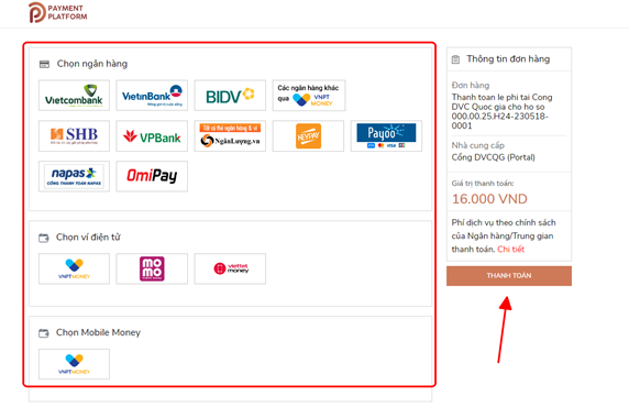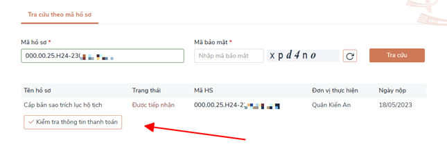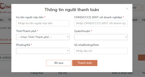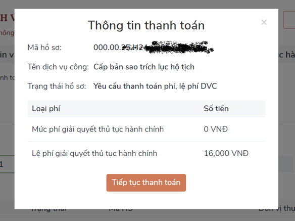 - Nếu hồ sơ đủ điều kiện thanh toán trực tuyến, tiếp tục thực hiện bước 5