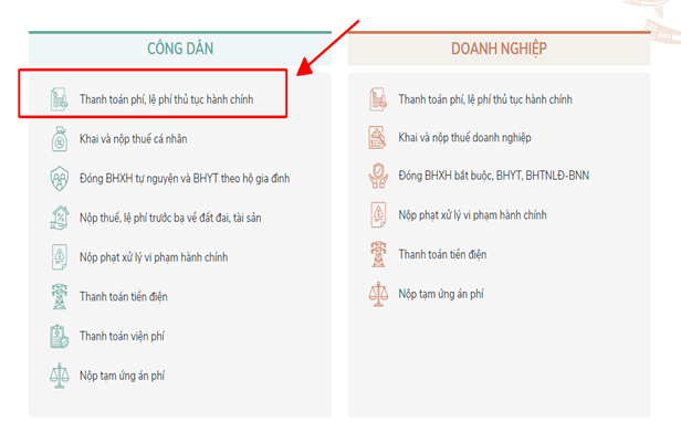 Hướng dẫn thanh toán phí, lệ phí trực tuyến trên Cổng Dịch vụ công quốc gia