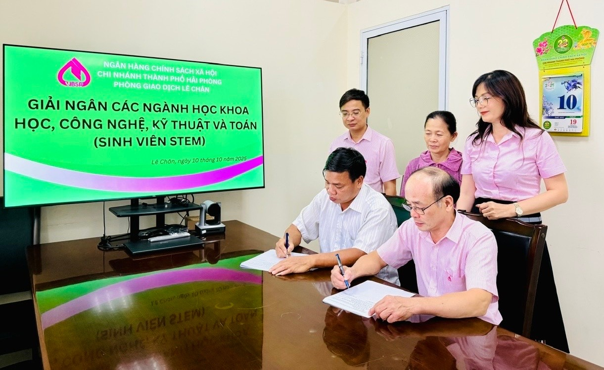 Sáng ngày 10/10/2025, tại Phòng Giao dịch Ngân hàng Chính sách xã hội Lê Chân, khoản vay đầu tiên dành cho sinh viên ngành STEM theo chương trình tín dụng mới đã chính thức được giải ngân. Đây là bước khởi đầu quan trọng trong việc triển khai thực hiện Quyết định số 29/2025/QĐ-TTg ngày 28/08/2025 của Thủ tướng Chính phủ, đánh dấu nỗ lực của Nhà nước trong việc hỗ trợ đào tạo nguồn nhân lực chất lượng cao trong các lĩnh vực khoa học, công nghệ, kỹ thuật và toán học.